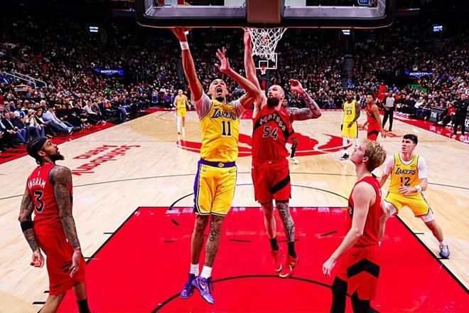 在此前的一次NBA常规赛中,缺少了后场核心卢卡-东契奇(Luka Doncic)的洛杉矶湖人凭借着八村塁(Rui Hachimura)在最后时刻的三分绝杀以123比120险胜了主场作战的多伦多猛龙。本场比赛后,在最近9场比赛中取得了8场胜利的湖人的战绩提升到了16胜5负,继续排名西部第2位;而在最近4场比赛中输掉了3场的猛龙的战绩则是下滑到了15胜8负,排名也是跌到了东部第3位。